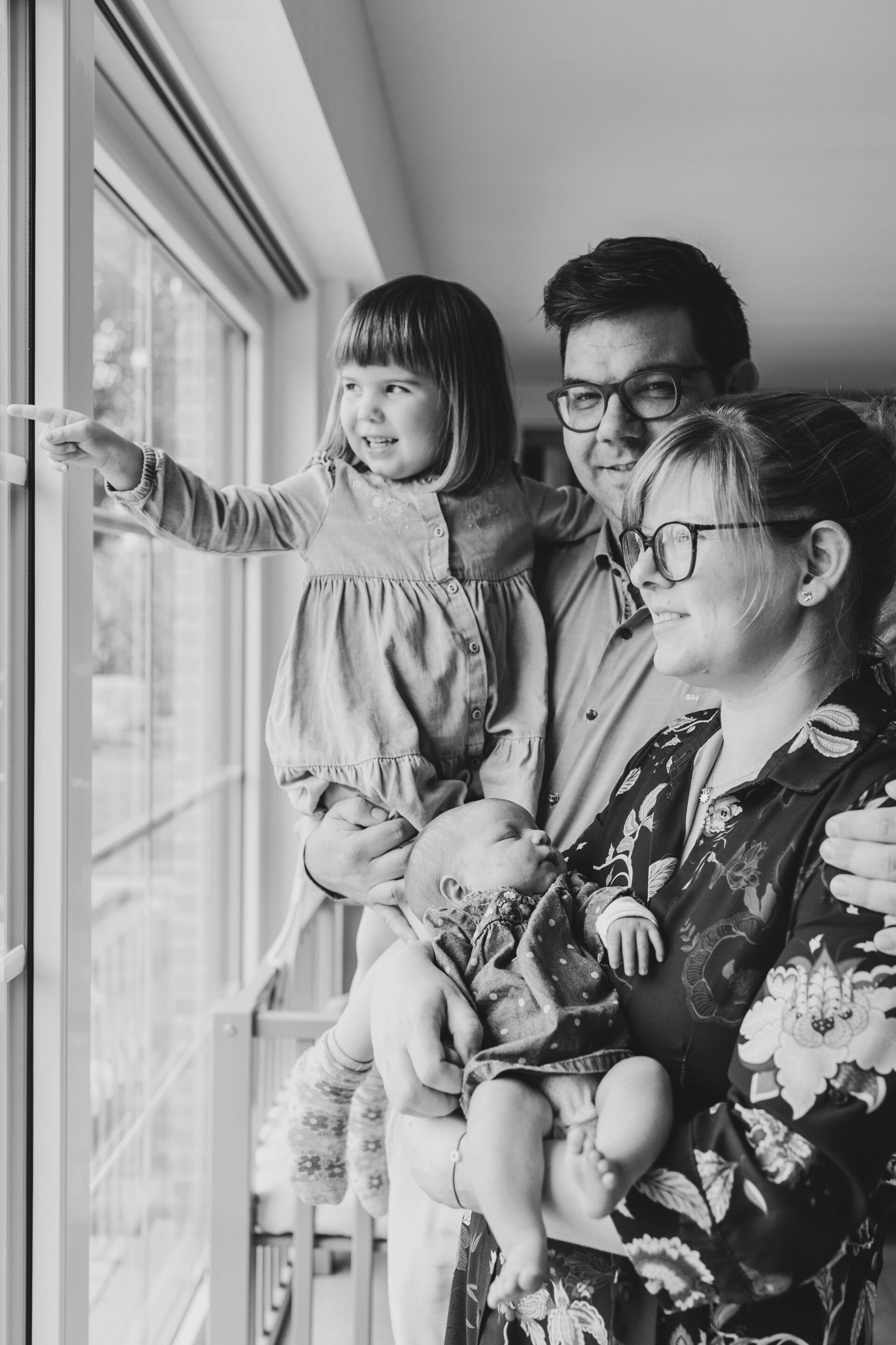 De newborn foto’s van ons regenboogje R, de gekke bekken van onze oudste dochter M, een super fiere mama en papa, zelfs de hond heeft een plaats en natuurlijk ons vlindertje J*. In elke foto zie ik haar. Het koesterbandje, de vlinderknuffel, onze blikken gericht naar de vlinders in de tuin, haar foto tussen ons in,…ze hoort er echt bij!